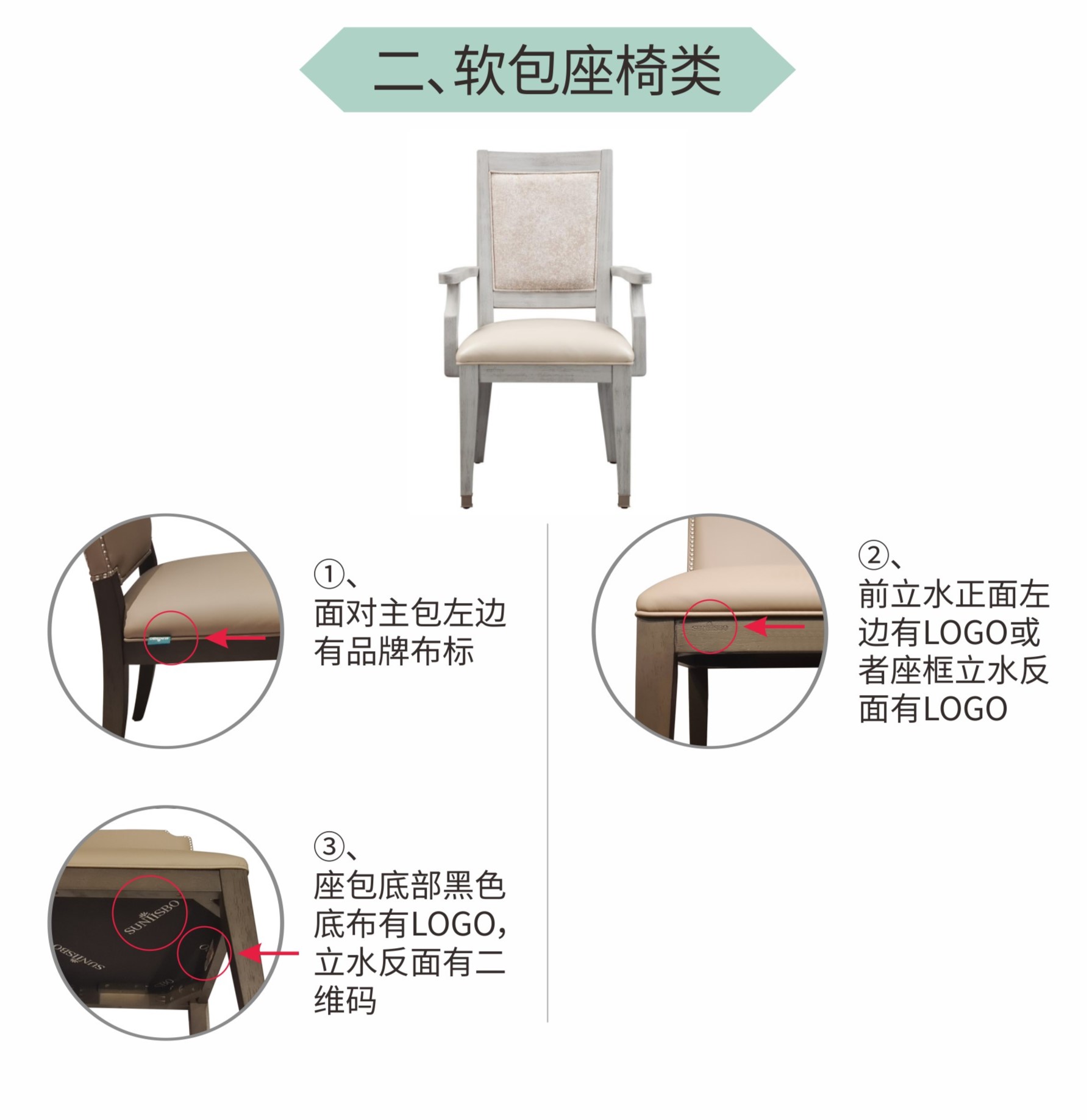 (1)產品扶手處有品牌布標;