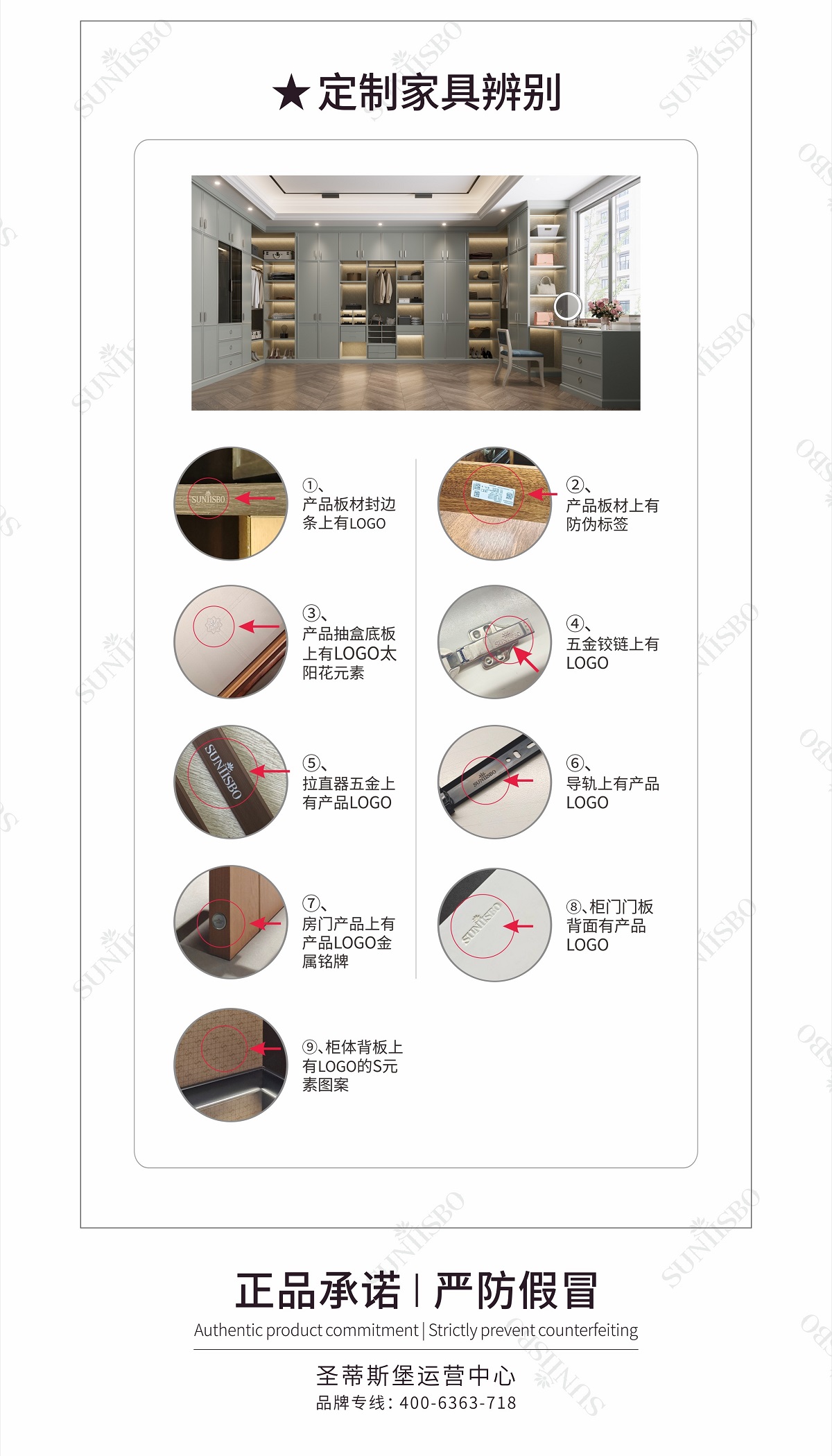 1、請您在購買時選擇帶有“SUNTISBO圣蒂斯堡”標準LOGO字樣?頭的專賣店進?購買;