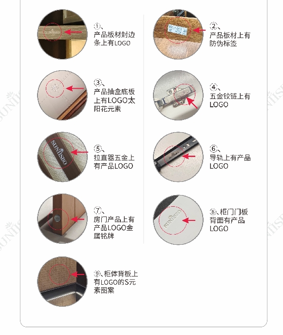 ①、產品板材封邊條上有LOGO